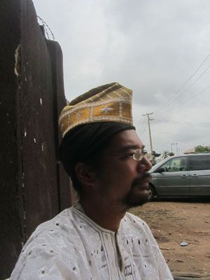 朝、携帯が鳴って起こされた。「今から迎えに行くから、着替えて待ってて」・・・ケニーからだ。実は、本日も、結婚式参戦。つーか、おとといに参戦した結婚式は、実は婚約式だったらしい。本番の結婚式は今日だ、ということで、本日は気合を入れ、前回はかぶらなかった帽子もかぶって、ヨルバ族の正装姿に変身。