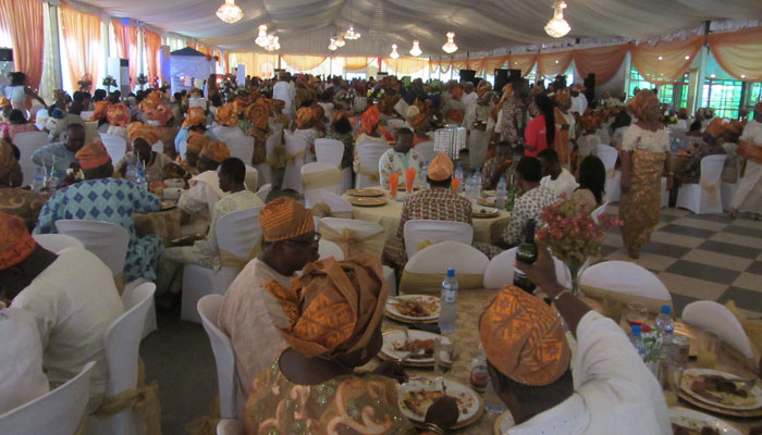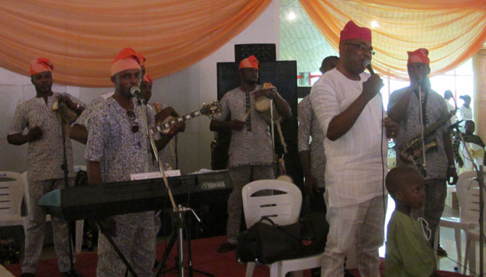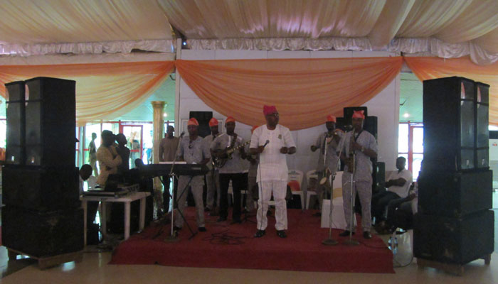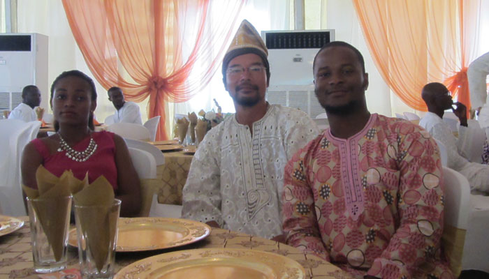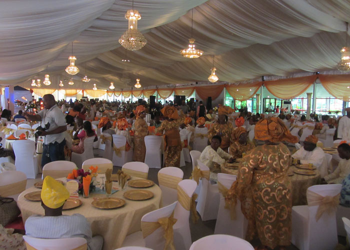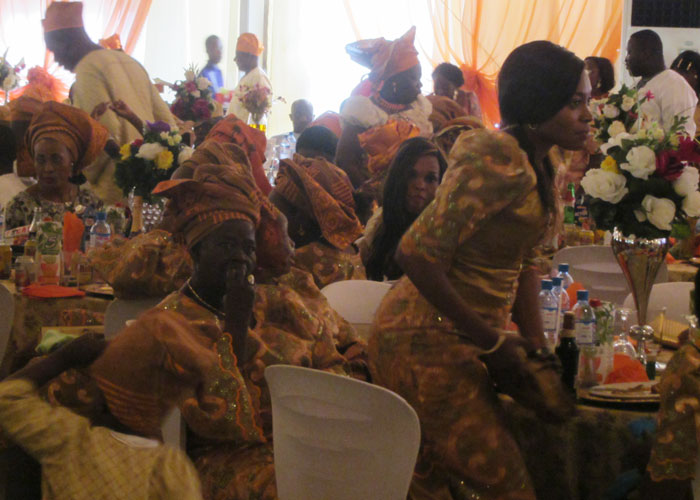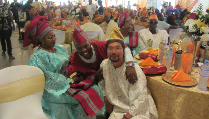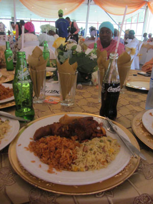 いやぁ、でも、いくらヨルバの正装をしているとはいえ、全員がナイジェリア人の会場を一人歩き回っている、<アナタは誰ですか?>状態の赤の他人のアジア人って、相当違和感があるんじゃって思うでしょ、日本人的感覚からいったら。でも、そんなオイラを、まるであたりまえのように受け入れてくれるってのが、アフリカの懐の深さ。
