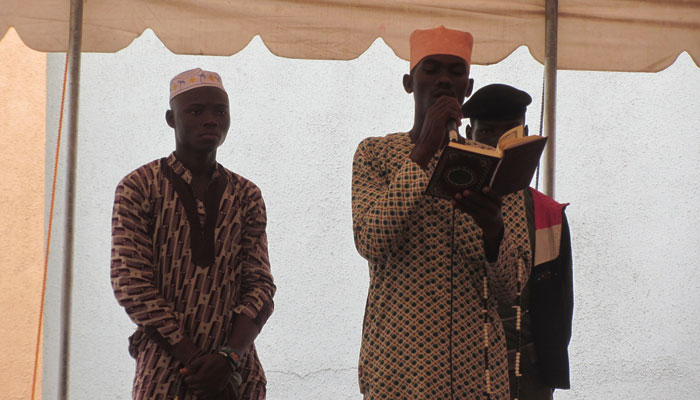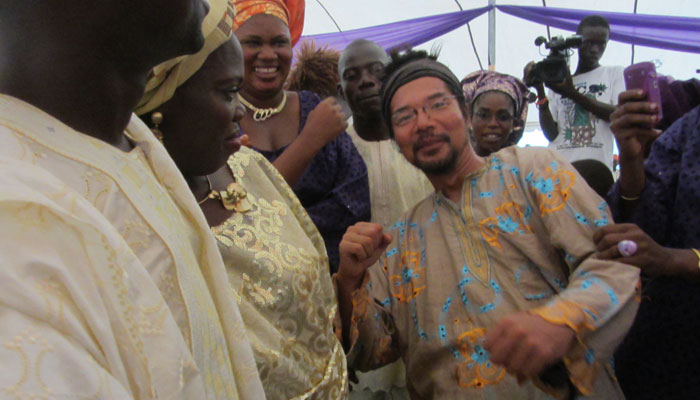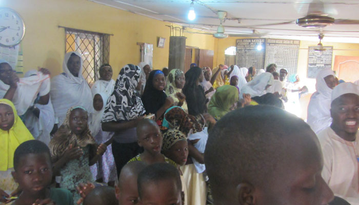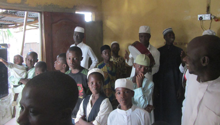朝起きて、周囲を散歩していたら、なにやら素敵な太鼓の音と歌声が聞こえてきた。音のするほうへ行ってみて、辿り着いたのは、イスラムのモスク(といっても立派な建物ではなく、町の集会所みたいなところなのだが)。ブードゥー教とかが有名だし、ヨルバ族ってヨルバ独特の宗教を持っているのかと思っていたのだが、実際には、結構ムスリムが多いらしい。ちなみにケニー一家もムスリムだ。