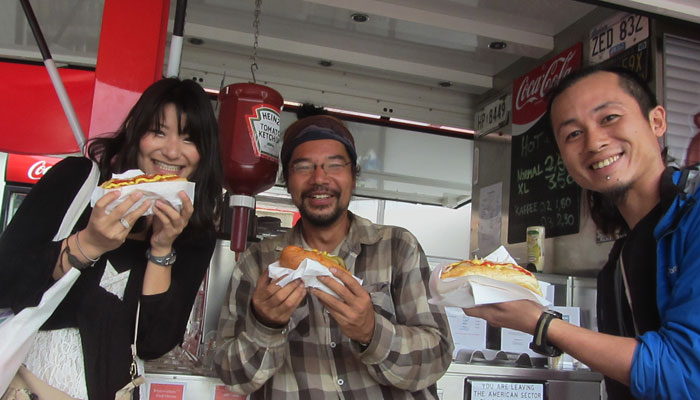 とりあえず、お疲れさまってことで、まずは、空港でてすぐのところにあったホットドッグ屋で、ホットドッグ乾杯。