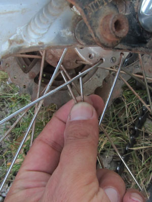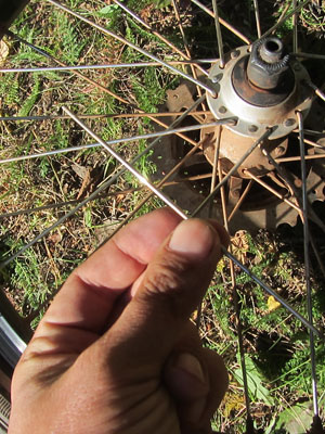 さて、出発する前に・・・折れたスポークを取り替えなきゃ。実は、昨日走り終わった後、後輪がカラカラなるので、チェックしてみたら、スポークが一本折れちゃっていたんですよ。やっぱり、荷物が重すぎるからなんすかねぇ・・・やっぱり、バラフォンが負担かけちゃっているんだろうなぁ・・・