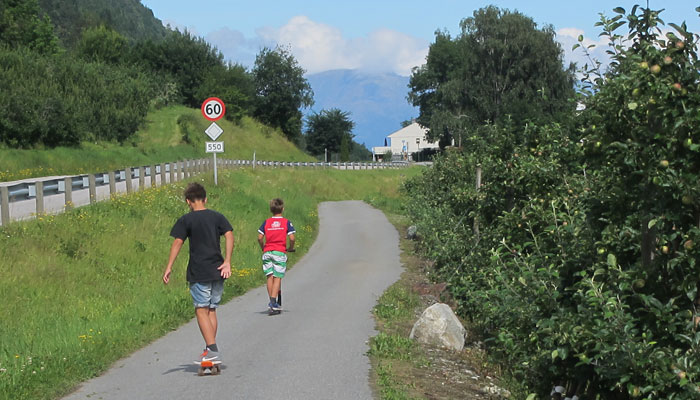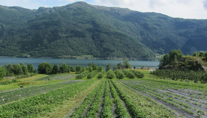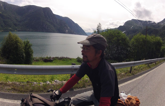 さて、無事にOddaを出発。ここからの道は、フィヨルドの入り江の部分を走ることになる。そんなにアップダウンはなく、大変ではなかった。天気もよかったし、イチゴやチェリー、リンゴなどの農園が続くのどかな風景が広がっていて、非常に心地よい。