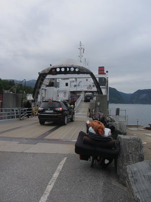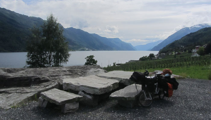 BrimnesというところからBruravikってところまではフェリー移動。次に目指す、Vossって町までは、自転車専用道路が作られており、非常に走りやすかった。できればVossまで今日中に行ってしまいたかったのだが・・・昨日泊まった感じからすると、キャンプ場に泊まる場合、大きな町近くのキャンプ場より、辺鄙な場所にあるキャンプ場の方が安いみたい。ということで、途中で見つけた小さなキャンプ場にチェックイン。