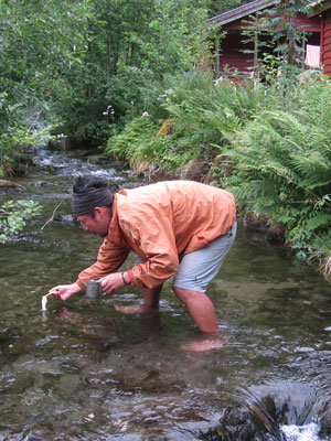 小川とそうめん・・・とくれば、流しそうめんでしょ。以前、パタゴニアで出会ったチャリダーケンちゃんが、ブログに、パタゴニアの清流で流しそうめんをしてみた、ってなことを書いていて、なるほど、それは面白いって思ってたんですよ。で、早速オイラもやってみることに。