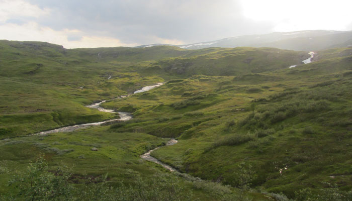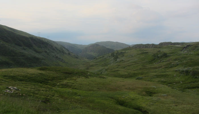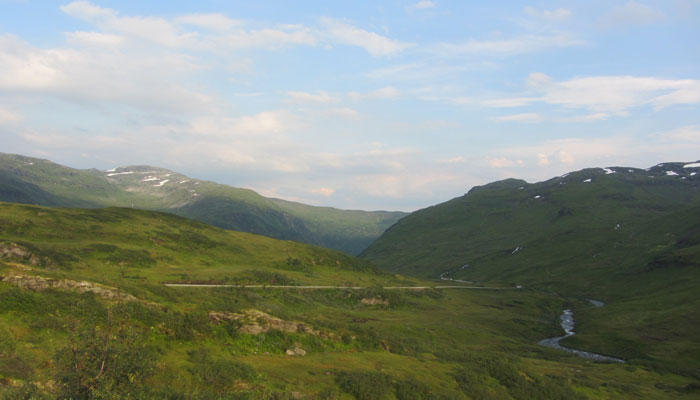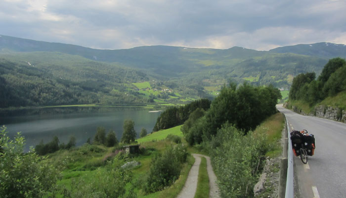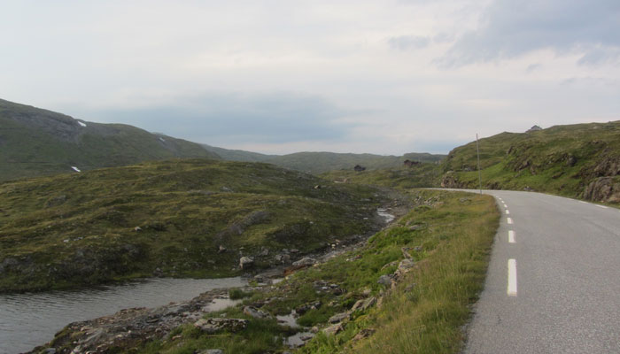 その点、ここの道は上った後、しばらく上りっぱなしになっているっぽかった。山の峰につくられた道らしい。うむむ、この感じ・・・そうそう、こういう風景を見たかったんですよ。こういう風景をノルウェーに期待していたんですよ。
