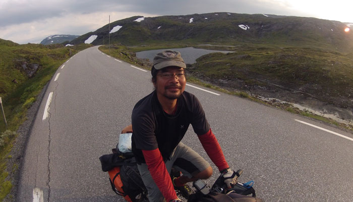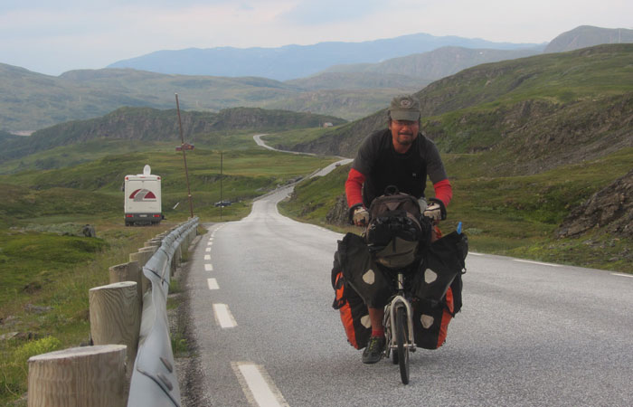 これまでは、ずっとフィヨルドの、水沿いとか、えぐられた中道ばかりを走ってきて、どちらかというと、下から眺め見るばかりの景色だった。もちろん上りとかもあったのだが、その後すぐにダウン道となり、また降りてしまい、いつもの見上げる景色にすぐ戻るって道ばかりで。