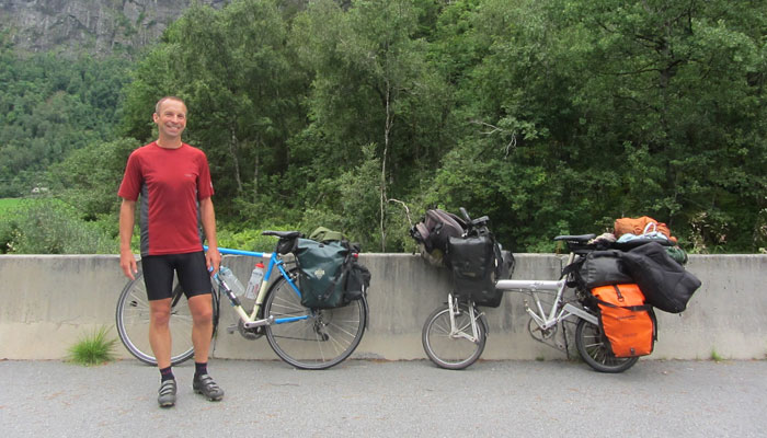 その後、緩やかな下り坂になり、楽ちんだ・・・と思っていたら、雨が降り始めたので、屋根つきバス停に退避。雨が多いノルウェーでは、屋根つきのバス停が多い。なので、雨宿りは比較的簡単にできるんですよ。しかし、雨宿りしやすいのはいいのだが、頻繁に降る雨の度に雨宿りしていては、全然前に進めない。雨の中を走るってのも出来なくはないんですけどねぇ・・・なるべくならやりたくない。