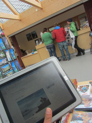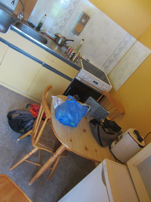 そうそう、ノルウェーのキャンプ場、かなりしっかりしたキッチン施設が備えてありまして。キャンプ場宿泊客は、このキッチン施設を自由に使うことができるんですよ。が、キャンプ場宿泊客の多くは、キャンピングカーで泊まっている人たちでして。で、キャンピングカーの人たちってのは、キャンピングカー内にキッチンがあるので、調理とかはそちらでやってしまう。ということで、キッチンってあまり使われていないんです。ということで、ほぼ独占状態のキッチンで、オイラは食事を作った後も、居残り、パソコン作業。電源がとれ、机や椅子まであるのだから、作業するには、ベストな環境なんですわ。