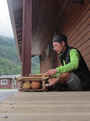 あ~、でも、当初の予定では、北欧走っている間は、バラフォン毎日叩きまくりのつもりだったんだけどなぁ。いや、やろうと思えば、時間はあるんです。が、問題は雨なんすよ。キャンプ場で休んでいる時も、雨が降っちゃっているから、バラフォンが広げられず、叩けないってな状況ばかりで。このキャンプ場みたいに、屋根があるところがあればいいんですけどねぇ・・・