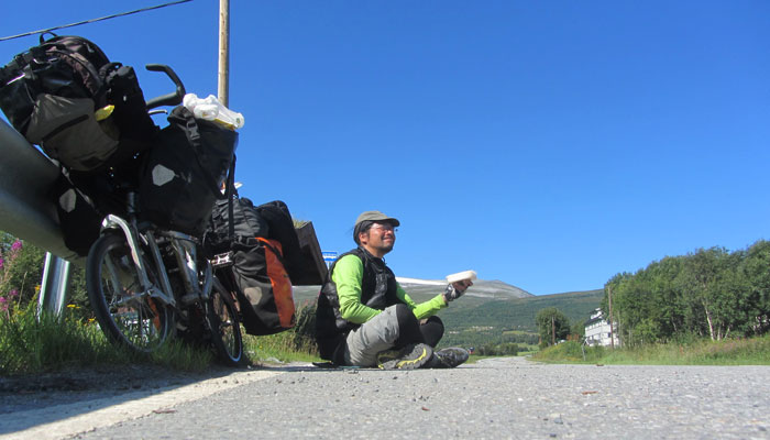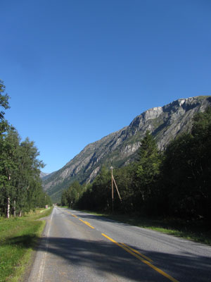 さて、今日は・・・天気はめっちゃよかったのですが・・・風景の迫力がイマひとつだった。どうせなら、昨日走ってきた道をこの天気の下で見たかった~、なんて思ってみたりもするのだが、ノルウェーの天気ばかりは狙ってどうこうできるもんじゃない。しょうがないです、運です、ハイ。