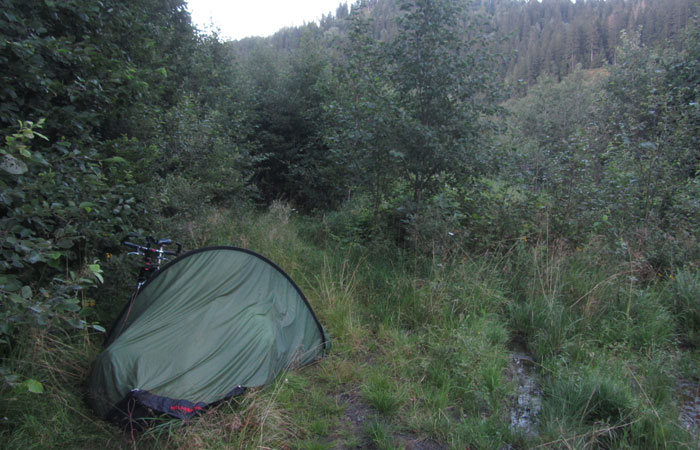 朝起きて、テントから出てビックリした。空は雲一つ無い青空だったのだ。う~ん、こんな空、ノルウェーに入ってから見たことなかったぞ。こんな天気もありうるんだな。