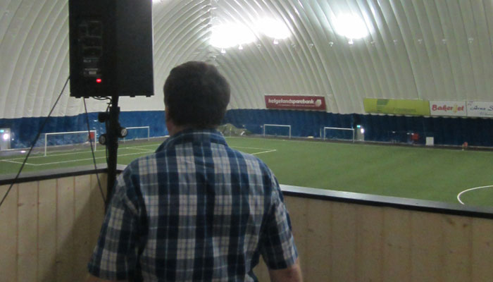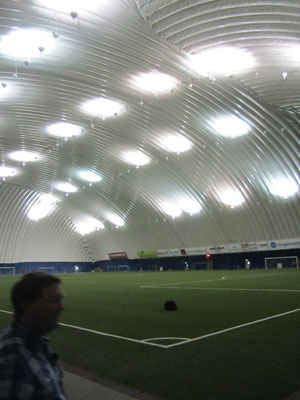 さて到着したドーム、ここは、オイラが泊まっているスポーツ施設の人たちが主催して作り上げたものらしい。一応屋外にも、サッカー場はあるのだが、冬が長いノルウェーで、一年中サッカーが出来るようにと、がんばって作ったものとのこと。