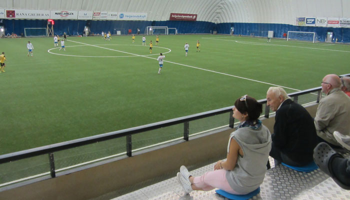 さて、試合は、地元Mo i Ranaのチームと、更に北部にあるロフォーテン諸島のチームとのマッチゲームだった。最初Mo i Ranaのチームが先制し、大いに盛り上がったのだが、結局終盤ギリギリに追いつかれ、ドロー。う~ん、残念。