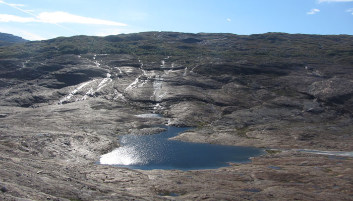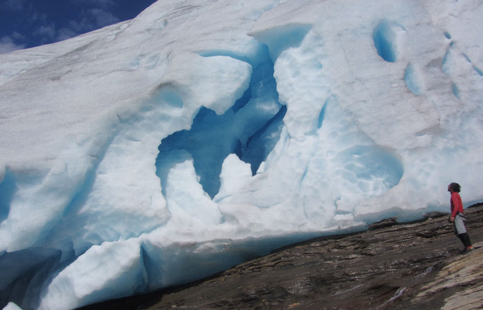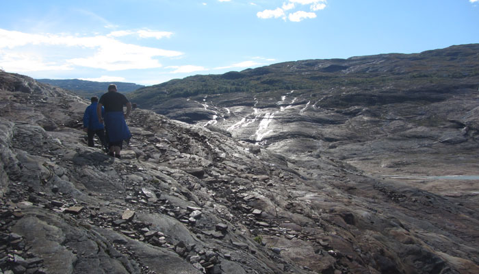 で、チェルおじさんの友人が出してくれた車で、スヴァルティセン氷河へ。このスヴァルティセン氷河は、ノルウェーで二番目にデカイ氷河らしい。ちなみに一番デカイ氷河は、オイラが南部ノルウェーで訪れたブリクスダール氷河の本流であるヨステダール氷河。