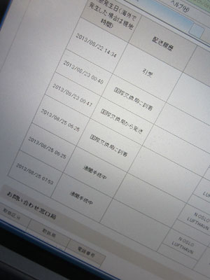 日曜日にはオスロに到着していた荷物。そろそろこちらに到着する頃だろうと待っていたところ、今日のお昼ごろ、宿に郵便局から一枚の紙が届いた。ノルウェー語で書かれていたので、中身はよく分からなかったが、宿のおじさんの話によると、日本からの荷物の件に関してのお知らせ紙とのこと。荷物が届きましたので、取りに来てください連絡だと思ったオイラは、喜びいさんで、郵便局へ。