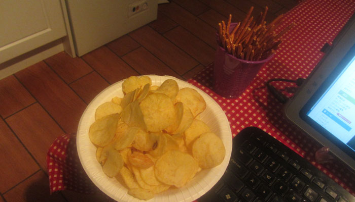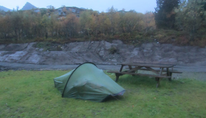さて、ということで、やってきた隣町のキャンプ場。ずぶぬれのオイラを見て、オーナーさんは宿代はまけてくれなかったけど、ネット代を無料にしてくれた。そして、テントを張った後、すぐに、屋根のあるキッチンハウスに退避して、パソコン作業をしながら、濡れた衣服を乾かしていたら、夕食を食べていた、別グループのキャンパーのおじさまおばさまたちが「スナック菓子は好き?」と聞いてきて、ポテチとかを差し入れしてくれまして。ノルウェーはポテチも高くて、なかなか手をだせない、貴重なお菓子。ありがたくいただいて、おじさまおばさまたちとしばし談笑。
