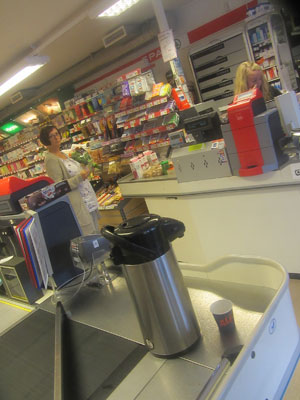 朝飯を食べた後、テントをたたみ、荷物を装着して走り始める。途中、食材補給のため立ち寄ったスーパーで買い物をしていたら、スーパーのおばちゃんが、「コーヒー一杯おごってあげるわ。飲んでいきなさい」と、紙コップを渡してくれた。ノルウェーでは、スーパーとかにポットに入れたコーヒーが置かれている。先日の17号でのフェリー待ちの際コーヒーを魔法瓶に入れて持ち歩いているおじさんからコーヒーをいただいたことからも、分かるように、ノルウェーはかなりのコーヒー文化圏。コーヒーはどこでも飲もうと思えば飲めるようになっている。ただ、スーパーに置かれているコーヒーは普通は有料で、結構お高い。なので、スーパーコーヒーを飲むなんてことはしたことがなかったのだが・・・今日は、優しいお誘いをいただけたので、初スーパーコーヒーに挑戦。うむむ・・・まぁ、いたって普通のコーヒーでしたケド・・・こういうのは、気持ちが嬉しいからね。こういう状況でいただくコーヒーの味は極上。