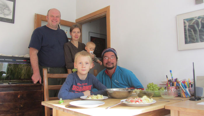 さて、お昼の時間になったので、ロベルト宅に戻ることに。で、戻ったロベルト宅では、ロベルトと奥さんのドミニカさんが昼食を作ってくれている最中だった。食事が出来上がるまで、息子のテトルスくんと遊ぶオイラ。ちなみに、ロベルトファミリーは4人家族。もう一人、生まれたばかりのカラクフくんもいて、ドミニカさんは、食事の用意をしながら、カラクフくんの面倒をみて、と大忙し。カラクフくんの面倒もオイラが見てあげられればいいのだが・・・オイラはオイラで、テトルスくんの遊び相手で大忙し。やんちゃ坊主なお年頃のテトルスくんの遊び相手は、意外と結構大変なのですよ。
