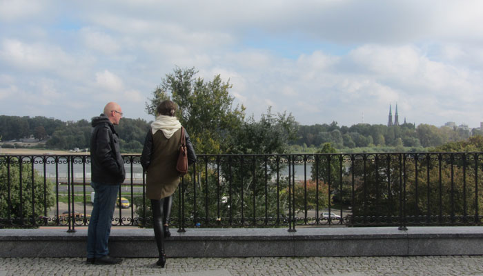 車で迎えに来てくれていたロベルトの車に折りたたんだチャリと荷物を乗せ、ロベルト宅へ。早速朝食を振舞っていただきまして。いやぁ、ホント、ありがたい。一息ついた後、ロベルトから、ワルシャワの街の見所を聞いて、早速ワルシャワの街を散策することに。「昼飯を作って待っているから、お昼には戻ってきてな」というロベルトに言われ、街へ。