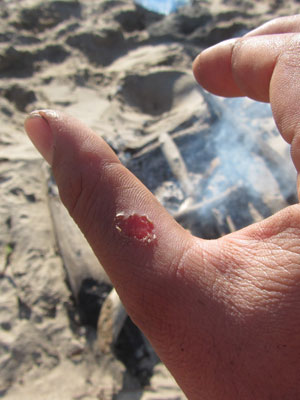まぁ・・・晴れの中ゴールして、気持ちよく終わったほうが、カヤック旅が好印象のまま心に残るし、今回はあと20kmで終了ってことでいいか。それに、右手の親指が痛いし。そうそう、初めてのカヤック漕ぎだったので、握り方が悪かったのか、力の入れ方が悪かったのか、右手親指にマメが出来てしまいまして。そして、それがつぶれてしまい、今や、漕ぐたびに右手が痛むってな状態ではあったんですよ。