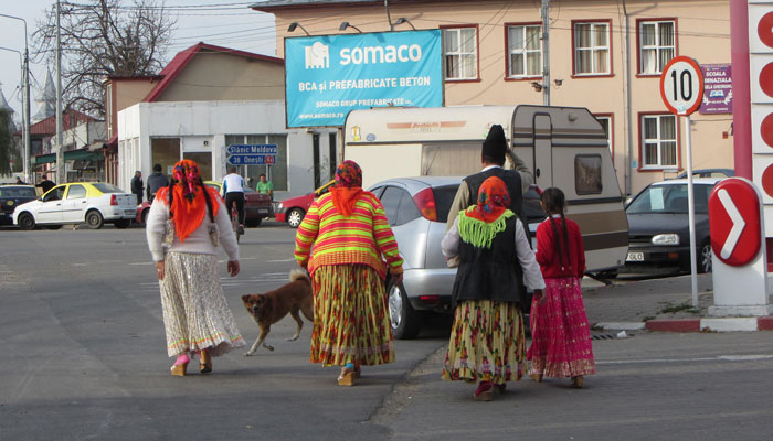 さてさて、チェックイン後、飯でも食べようと、Adjudの町を歩いていたら、妙に目立つカラフルな民族衣装を着た人たちをたくさんみかけた。うむむ?あの人たちがロマ(ジプシー)なのかな?確かに、全然溶け込んでおらず、浮いた感じの存在だったな、彼らは。