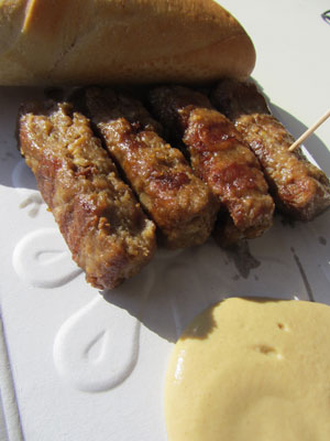 この<Mici(ミチィ)>というのは、香辛料を加えた粗挽肉を一口大の棒状にして焼いた料理。まぁ、いうなれば、皮なし餃子ってとこ。モロッコのケフタに似てはいるのだが、アレより全然美味い。