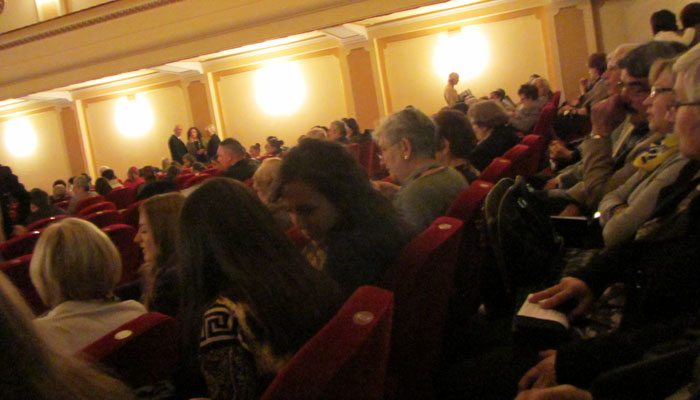 が、会場に到着して、他の見に来ている方々を見て、愕然。めっちゃオシャレして来ているんですよ。男性は、スーツっぽい姿が原則だし、女性は、普段の町ではみかけないような素敵なドレスを着ている。子供も結構見に来ているんだけど、そんな子供も、みんなビシッとした格好で。普段しないようなオシャレをしてくるための場として、オペラは存在しているのではないか、と思っちゃったくらい、皆さん、キメまくってる。