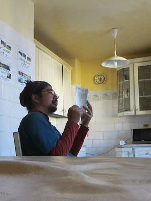 昨日に引き続き、今日も読書日。今日は石田ゆうすけさんの<洗面器でヤギごはん>を読む。昨日は一日ベッドの上で寝転んで読んでいて、なんか体がおかしくなってきちゃったので、今日は、ちゃんと、椅子に座って読むことに。