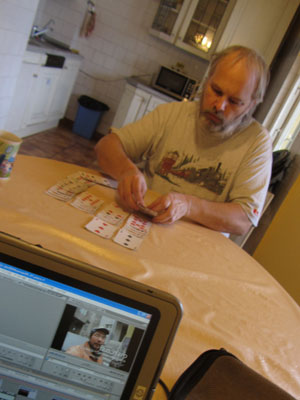 オイラとおじさんの二人が、一日中、黙々と、それぞれの遊びをやっているという、ちょっぴりシュールな、今日この頃の宿のキッチンの風景。