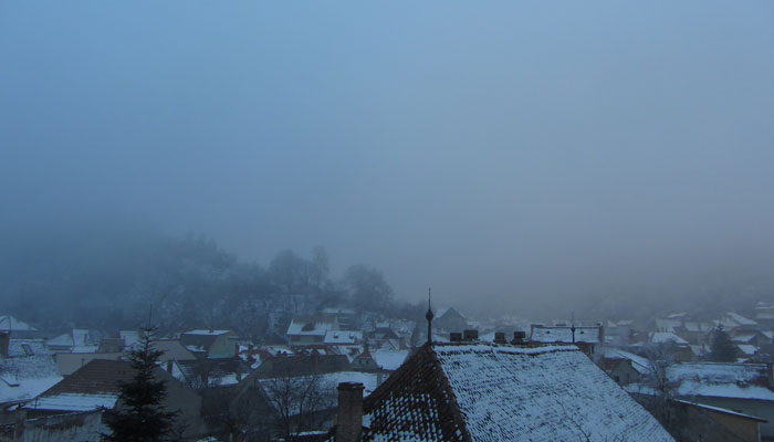どうせ宿に篭っているだけだから、外の天気は、オイラにはあまり関係ないのだが、ここんところ、ずっと曇りが続いている。一応、天気予報では、ここ一週間、ブラショフは晴れだって話だったのに・・・実は、この天気、曇りというより、立ち込めた霧が青空を隠してしまっているような天気。この時期のヨーロッパの天気がすぐれない原因は、こういった霧とか靄が発生しやすい地形や気候区ってことが関係しているんでしょう、きっと。