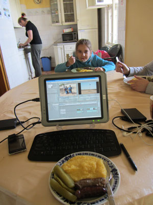 今日も朝からキッチンで、引き続き映像作業をしていたら、昼時、昼飯の準備をしていたルシーナさんが「昼ごはん、まだでしょ?」と、オイラのためにワンプレート、用意してくれた。ソーセージと、ピクルス(きゅうりの酢漬け?)と、ママリガ(トウモロコシを粗く挽いて粉にし、粥のように煮てから牛乳とバターを混ぜ込んだもの)という典型的なルーマニア料理のプレートだ。