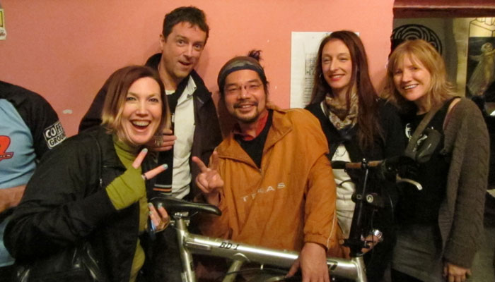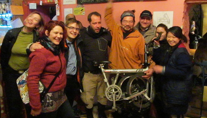 と、パーティーが盛り上がり始めたタイミングで、警察から、「調書が出来上がったので、自転車を渡せるよ」との連絡が入ったので、トミと共に、警察に取りに行く。で、相棒を片手に、パーティーに再登場。その後は、とにかくみんなに相棒と共にお礼参り。お世話になった人たちに、笑顔で相棒が戻ってきた喜びを伝えられるのがなによりも嬉しかった。