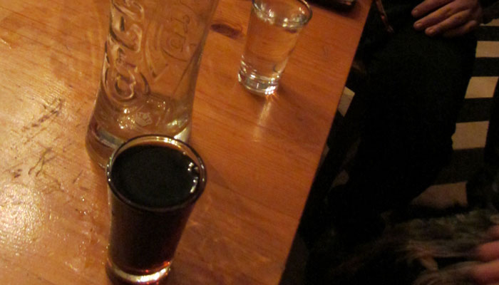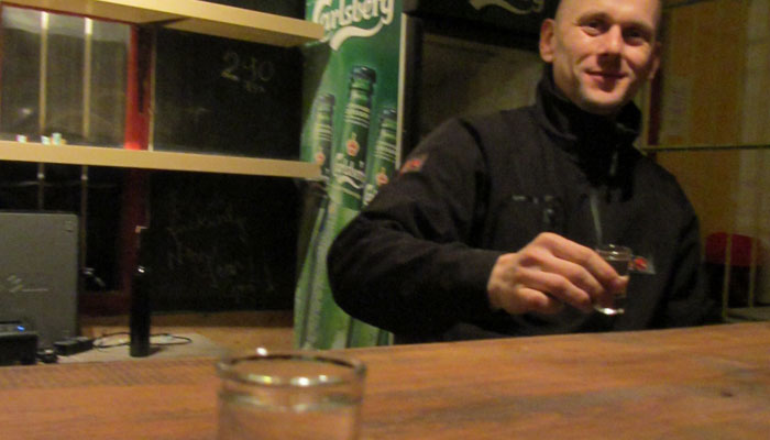 ハンガリーのお酒パリンカがショットに注がれ・・・乾杯。