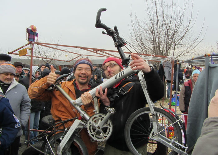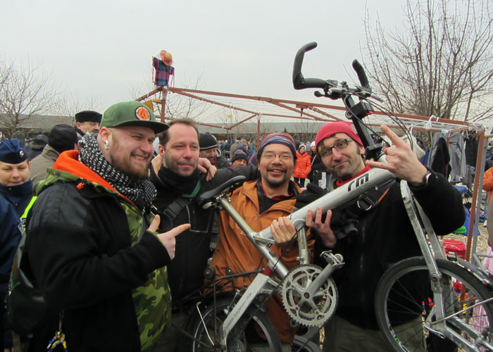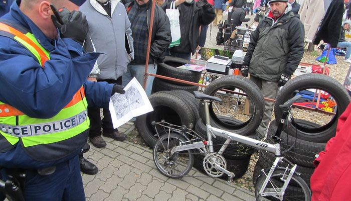 ちなみに、今日はどうやって発見されたのかというと・・・発見者はマーティンという自転車とカメラが好きなハンガリーの青年だったとのこと。掘り出し物を探しに、ボカンチュフリーマーケットを訪れたマーティンの目に一台の自転車が入った。その自転車が、ブダペスト・バイク・マフィアのホームページに掲載されてたのを見て覚えていた自転車に違いない、と思ったマーティンは、ブダペスト・バイク・マフィアのメンバーに連絡。その日も、朝早くからフリマに捜索に出てくれていたブダペスト・バイク・マフィアのメンバーが駆けつけてくれ、すぐに警察に連絡。そして、警察が、今度こそ、自転車を押さえてくれた、という流れだったらしい。