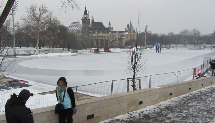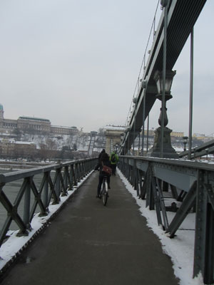 走ったコースはブダペスト観光の王道コース。重厚な鉄の吊橋である鎖橋を渡って王宮へ行き、王宮の丘から真っ白に雪化粧したブダペストの町を一望した後、ドナウ川沿いの心地よいサイクリングロードを走って、ドナウ川に浮かぶマルギット島へ。マルギット島をグルッと一周走ったところで腹が減ったので、みずきちゃんオススメの店に連れて行ってもらって、ハンガリー名物パラチンタで腹ごしらえ。その後、西駅のショッピングモールをブラブラした後、英雄広場へ行き、英雄広場周辺のいろんなスポットを適当に散策して、終了。