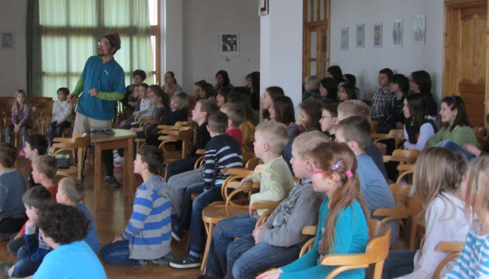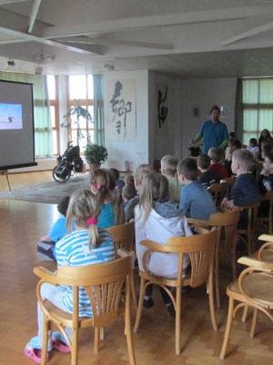 子供って具体的なものがあると喜ぶからね。相棒のファニーバニーはもちろん登場してもらい、さらにキャンプ用品とかいろいろな旅グッズを持ち出して・・・実は、余分なものもいっぱい詰めてフルパッキングでケストヘイに来たのはこのためでもあったのですよ。さらに、つたないながらも、ムビラやアサラトの演奏を聞かせたら、結構くいつきよかったりして。ま、子供たちが一番反応してくれたのは、アフリカでの国立公園をチャリで走った時の映像だったんですけどね。キリンと競争しながら走っている映像にキャーキャー言いながら喜んでくれた。