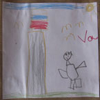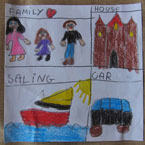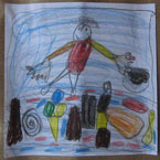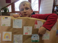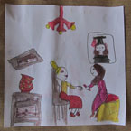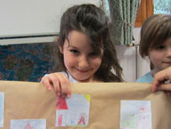 「お願いされてた子供たちの夢よ。みんな張り切って絵で描いてくれたの。その絵を一枚一枚この長い紙に貼っておいたわ」