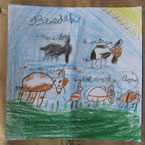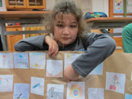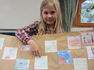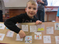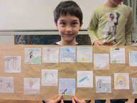 講演の最中に一人一人の将来の夢を聞いて・・・ってなことまでは出来なかったんだけど、描いてくれた絵を広げて、それをもとに話を展開させることができた。