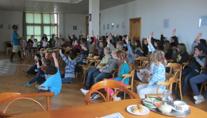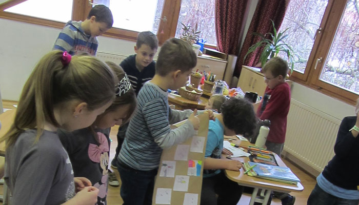 もちろん、一人一人の夢を聞くってだけでも、面白い体験だったのだが・・・実は、授業中の教室を覗かせてもらえたってことが、興味深い体験となった。ハンガリーの小学校の教室って机がコの字っていうか、真ん中を囲むようなカタチで並べられているんですよ。日本の教室のように、教壇があってそっちに向けて画一的に机が並んでいるようなことはない。これはつまり、先生が主で生徒が聞くというカタチではなく、生徒が生徒同士で話し合いをするということを主眼に置いたカタチなのだ。