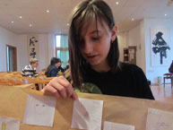 で、今日がその小学校での講演当日。美奈さんに連れられて、小学校に行ったところ・・・迎えてくれた先生たちにまず手渡されたのが、巻物のようにくるくると巻かれた長い紙だった。