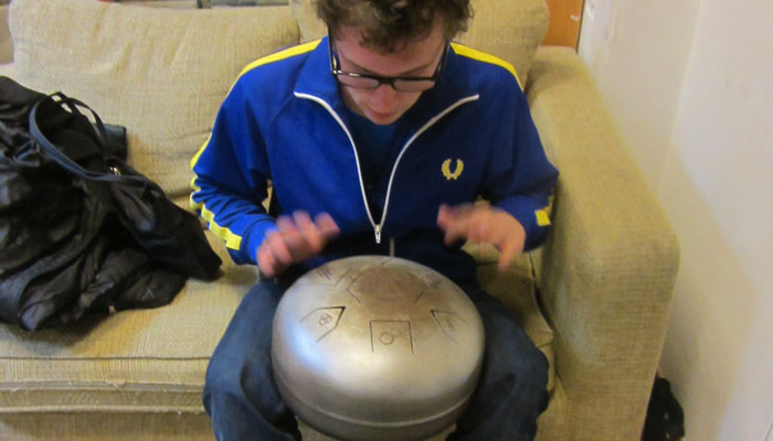 さてさて、夜、講演お疲れさんということで、先生たちが慰労パーティーを開いてくれた。その先生の息子さんで、オイラが音楽に興味があるということをききつけ、自前のスチームドラムを持ってきて披露してくれたりもして、いやはや嬉しいパーティーとなった。