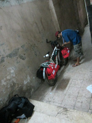 チャンくんにとって、本格的なチャリ旅の初日。なかなか進まないチャンくんのペースに合わせて、ゆっくり進むオイラたち。まぁ、最初はいろいろ大変ですよ。特にチャンくんのチャリは、ここで買ったチャリだからね。それなりのを買ったみたいなので、すぐに壊れたりしないだろうけど、荷物の装着とか、ありあわせのもので、急場しのぎに取り付けた部分もあるので、不具合が起こってすぐ立ち止まらざるをえなくなる。まぁ、こういうのは最初から完璧なんてものにはならない。調整しながら、だんだんといいカタチに近づけていくものだ。