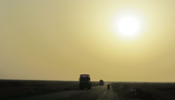 そして、砂漠道に入ってしまったら・・・予想通り、何もなくなった。交通量も一気に減った。出会うのはたまに通るトラックだけ。