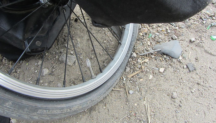 と、いろいろチャンくんのことを心配していたら、オイラのタイヤがパンクした。チャンくんが、お先に~、といいながら、走り抜けていく。