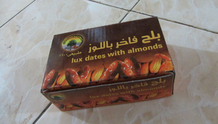 走りのお供にと思って昨日買ったデーツも、今日、おやつ代わりにパクパク食っていたら、結構なくなってきてしまったので、今日も追加でデーツを購入。デーツ屋(なんとデーツ専門店がある)を見ていたら、ナッツ入りのデーツが売ってたので、試食させてもらったところ、これがめっちゃ美味くて。デーツとナッツって合うんだな。ということで、これも大量に買ってみた。しかし、箱に入っているデーツすべてにナッツが埋め込まれている。これ、きっと手作業でやっているんだろう。その作業の手間暇を考えると、エライ大変だ・・・