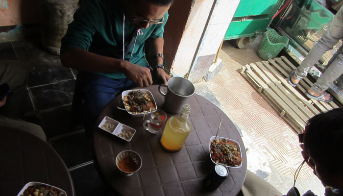 みんな大好きコシャリを大盛りで頼んでガッツクオイラたち。そんなオイラたちに絡んでくるファラフラの人たち。いや、オイラたち、まず、飯を落ち着いて食べたいんですケド・・・