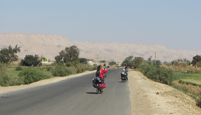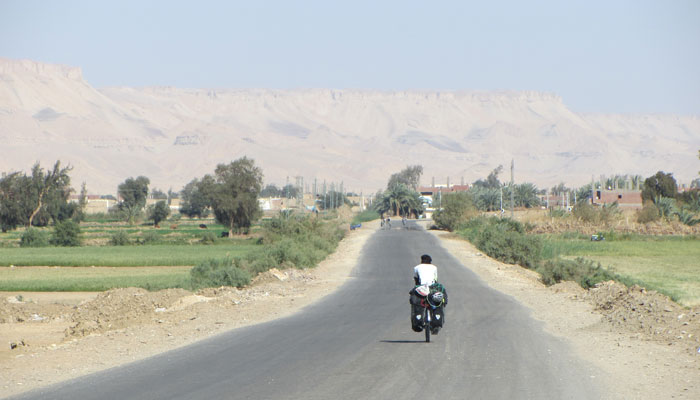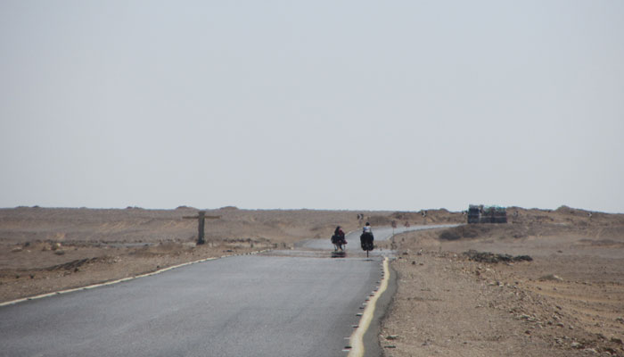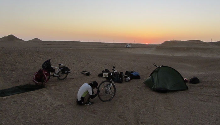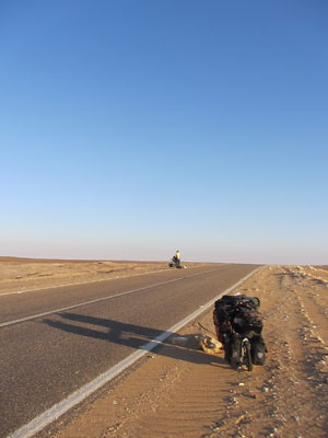 う~ん、自転車屋にみてもらいたいんだけど・・・自転車屋なんてないですわ。だってここは砂漠のど真ん中。