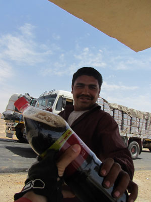 さて、その後、途中ではトラックのおじさんが売り物として大量に荷台に積んでいたコーラから一本抜き出してくれるし、休憩していたトラックのおじさんたちには、一緒にチャイをご馳走になったりした。