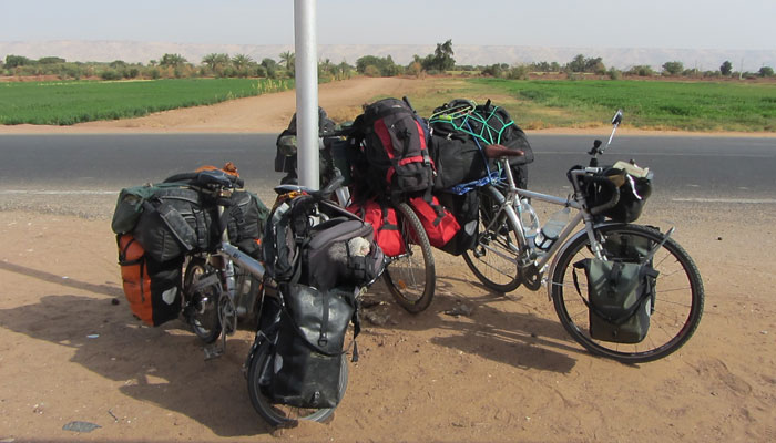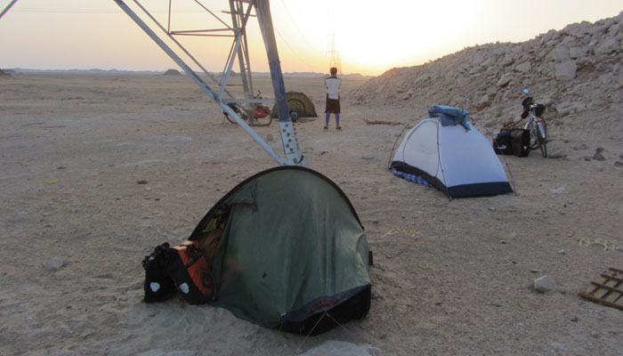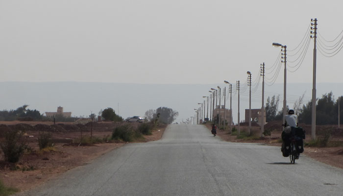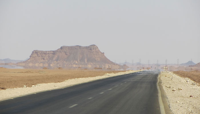 ダフラオアシスを出発。今日もひたすら砂漠道走り。