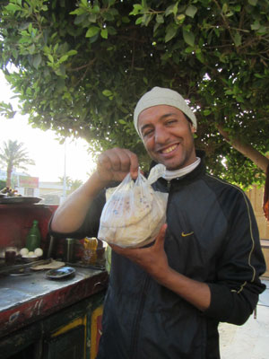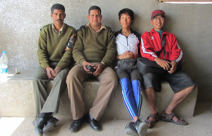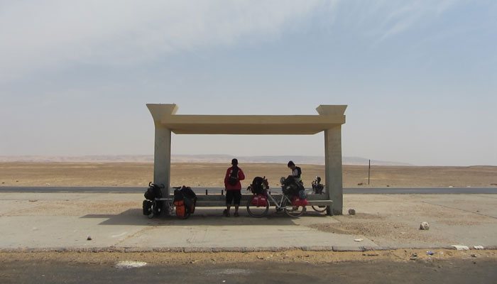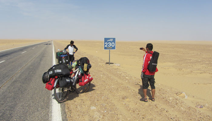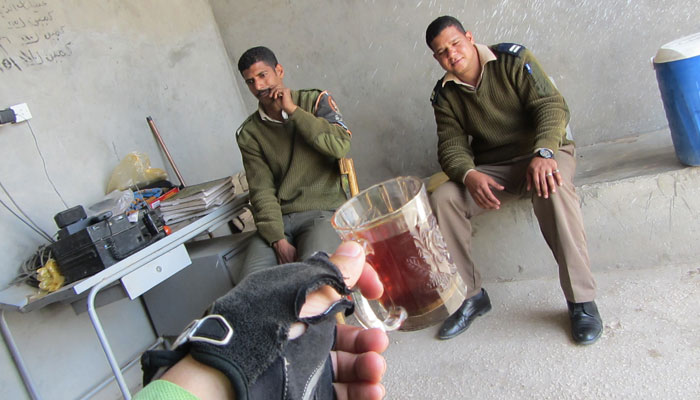 そろそろ都市であるルクソールに近づいてきたためか、途中途中に検問所的な場所が増えてきた。が、その検問的なところは、暇なのか、めっちゃフレンドリーにオイラたちにかまってくれる。取り調べで訊かれる前に、チャイをご馳走してくれ、めっちゃ和やかなムードで普段の友達トーク的な会話で、取り調べが行われる。